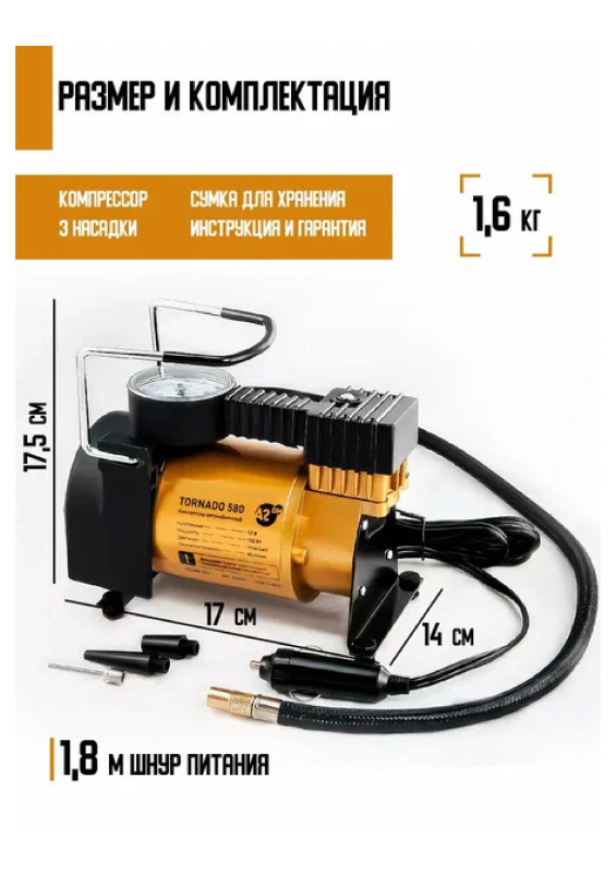 Компрессор автомоб 40л/мин 12V 150W TORNADO 580