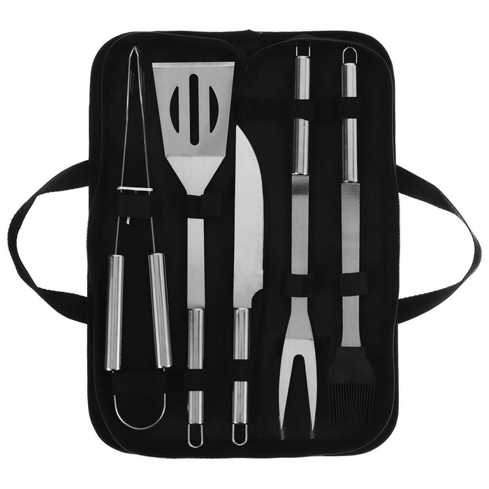 Набор для барбекю 5пр (лопатка, вилка, щипцы, силиконовая кисточка, нож) в сумке