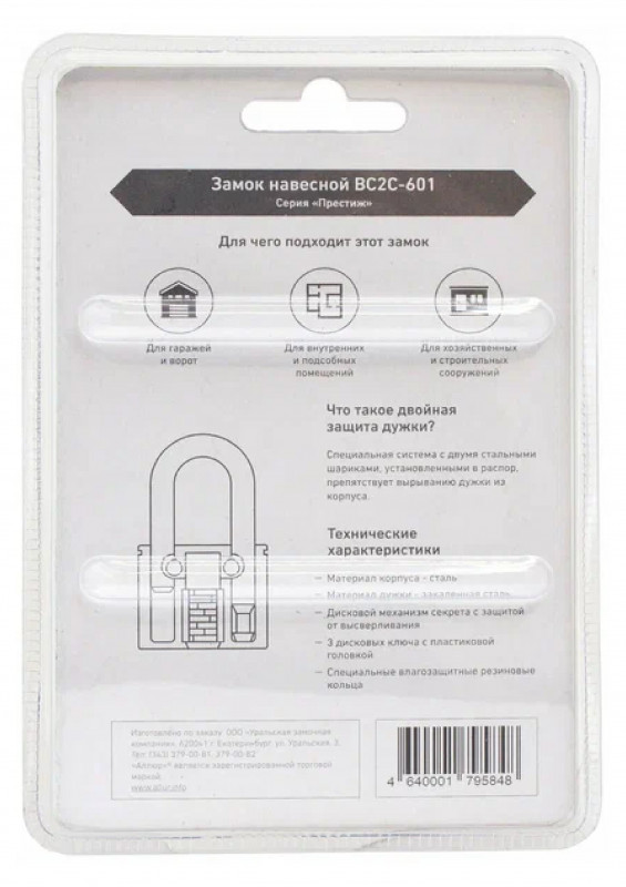 Замок навесной ВС2С-601 d-10,5мм Аллюр черный в наличии по цене 725 рублей в интернет-магазине «ЖЕЛЕЗО» в в Санкт-Петербурге. Мы предлагаем лучшую стоимость на категорию замок навесной. Приобрести Замок навесной ВС2С-601 d-10,5мм Аллюр черный можно оформив заказ в интернет-магазине, или отправив заявку по почте, а также по телефону 8 (800) 444-50-26 или в магазине. Бесплатная доставка при заказе от 1000 руб.