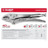 Профессиональные зажимные клещи ЗУБР отличаются усиленной кованной конструкцией и тщательно закаленными рабочими поверхностями и предназначен для удержания и надежной фиксации деталей при слесарно-монтажных, ремонтных, сварочных работах.