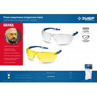 Очки защитные желтые отрытого типа ЗУБР Мастер